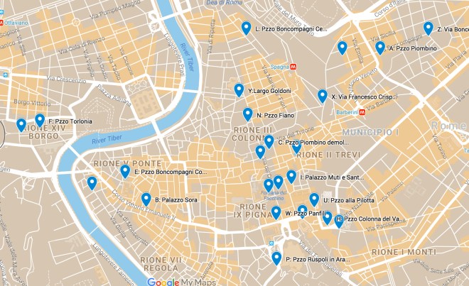 For an interactive version of this map showing domiciles of the Boncompagni Ludovisi in Rome, click here.
