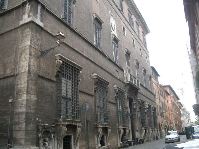 I cannot say when Don Gaetano did get a house for rent at the Palazzo Ricci (later Sacchetti) (O) in Via Giulia…