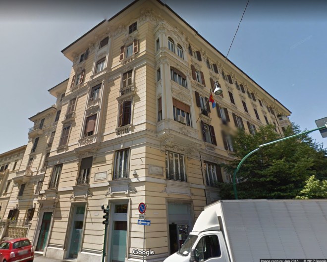…the one at the corner between Via Francesco Crispi and Via Gregoriana (X), that still carries the family’s coat of arms, and was purchased by Don Giuseppe, the third son of Don Rodolfo, prince of Piombino. He lived there with his family when he was forced to abandon the villino (see A) his parents had built for him between via Boncompagni and via Lucullo.