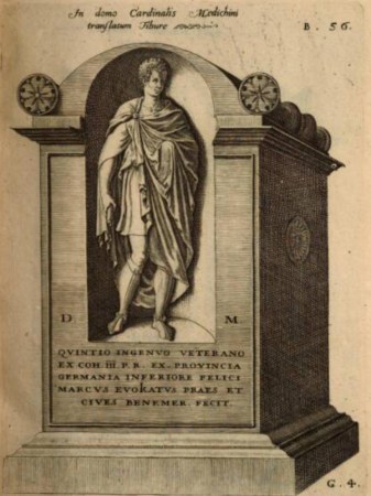 For an 1800 pound monument, it sure has made the rounds. Starting in the early sixteenth century, a long series of humanists in Rome took the time to note a substantial funerary altar that honored—with a full-length portrait in high relief and elegant inscription—Quintus Vetius Ingenuus, a veteran of the “Third Cohort” of Rome’s praetorian guard. Vetius (or perhaps properly ‘Vettius’) served as a praetorian almost certainly in the third century CE. Eventually, his altar ended up in the famed Ludovisi collection of sculptures, only to disappear more than 130 years ago. Since then it has wholly frustrated scholarly curiosity and scrutiny.