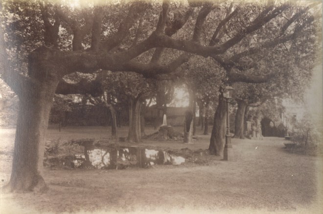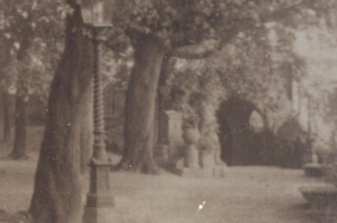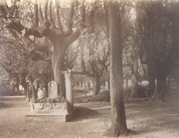 The approach to the Villa Ludovisi’s ‘Hermitage’, as seen in 1885 (detail), in photography campaign of Prince Ignazio Boncompagni Ludovisi (1845-1913). The left-hand side of the Vetius monument is visible in the center, between the second tree and the vase. Collection of HSH Prince Nicolo’ and HSH Princess Rita Boncompagni Ludovisi, Rome.