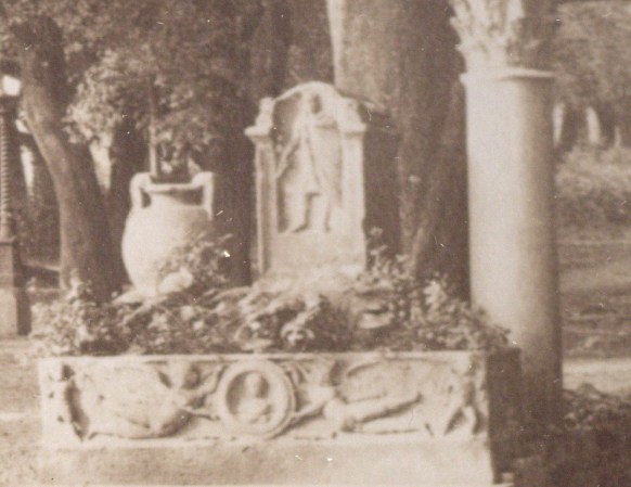 Outside the Villa Ludovisi’s ‘Hermitage’, as seen in 1885, in photography campaign of Prince Ignazio Boncompagni Ludovisi (1845-1913). The Vetius monument is plainly visible at center left, between vase and column. Collection of HSH Prince Nicolo’ and HSH Princess Rita Boncompagni Ludovisi, Rome.