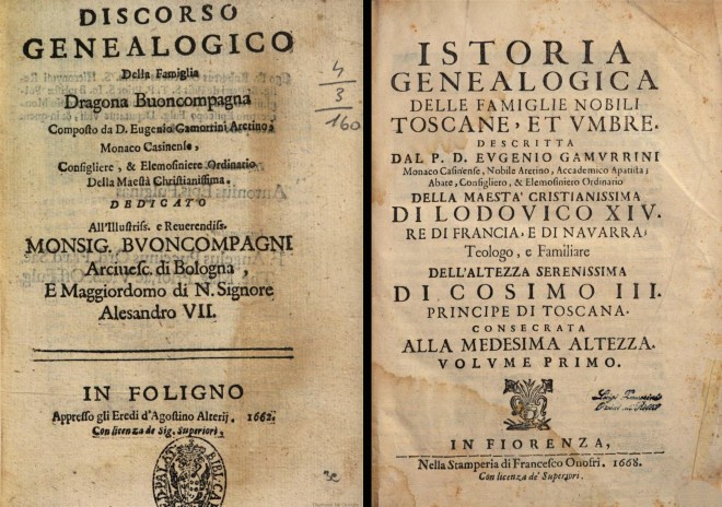 Two titles by Eugenio Gamurrini on Boncompagni genealogy (1662, 1668). Credit: Google Books.
