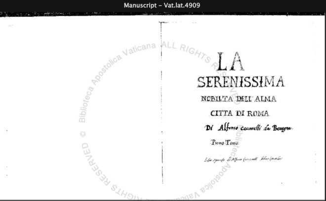 Screenshot of Ceccarelli MS La Serenissima Nobiltà dell’Alma Città di Roma at https://digi.vatlib.it/view/MSS_Vat.lat.4909