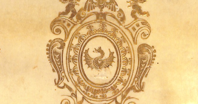 Detail of cover of Angelo Boncompagni, La vera Genelogia dell’Antichissima Famiglia de Buoncompagni di Bologna, d’Arezzo and di Visso ò Fuligno (1617). Collection of HSH Prince Nicolo’ and HSH Princess Rita Boncompagni Ludovisi, Rome.