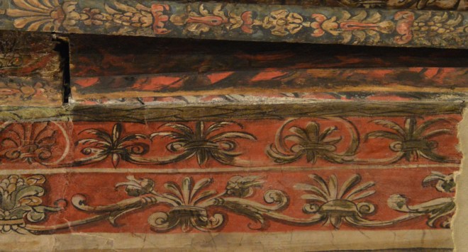 Newly-revealed (2017) upper walls and ceiling beams of the ‘Stanza del Letto’ in the Casino Aurora, Rome. Collection of HSH Prince Nicolò and HSH Princess Rita Boncompagni Ludovisi.