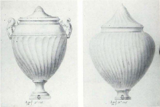 Vases from the Villa Ludovisi as sketched by Pompeo Batoni (probably ca. 1720-1730), from the collection of Richard Topham (1671-1730), now in the Library of Eton College. Reproduced from B. Palma (ed.), MNR Le sculture I.4. I Marmi Ludovisi: Storia della Collezione (1983) p113