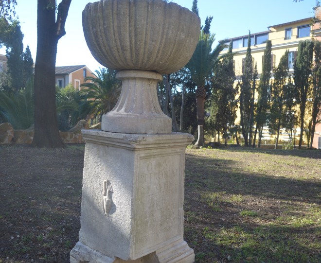 The Petronia Rufina monument at the Casino Aurora (January 2019). The vase and its base which stand on the monument are unrelated elements. Collection of †HSH Prince Nicolò and HSH Princess Rita Boncompagni Ludovisi, Rome.