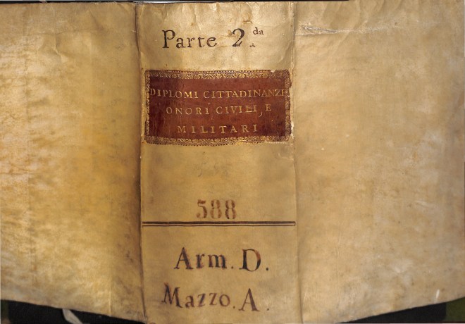 One of the most impressive attributes of the Archivio Boncompagni Ludovisi is its large collection of “Diplomas of citizenship, and of military and civil honors” that members of the family received over a span of some six centuries.