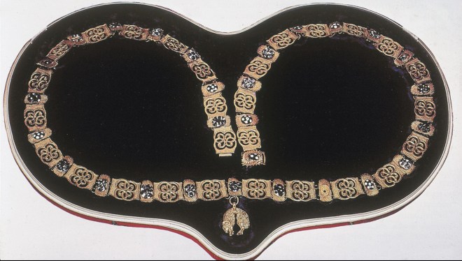 Golden Fleece chain (15th century) by Bruges goldsmith and jeweler Jean Peutin, one of 24 he created for the first Knights of the Order. Credit: Artstor Collections