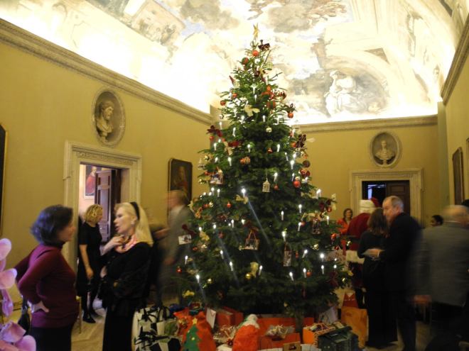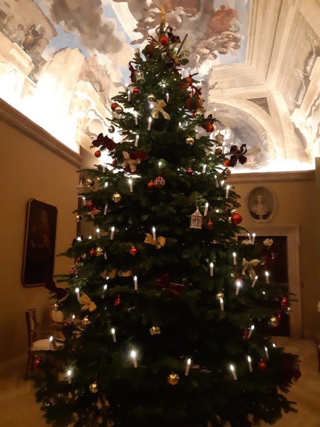 One of the great holiday traditions at Rome’s historic Villa Aurora is the raising and decoration of a monumental Christmas tree underneath Guercino’s frescoes in the great Sala. When topped with a star, these festive trees—including the 2019 edition—stretch to a height of over five full meters.