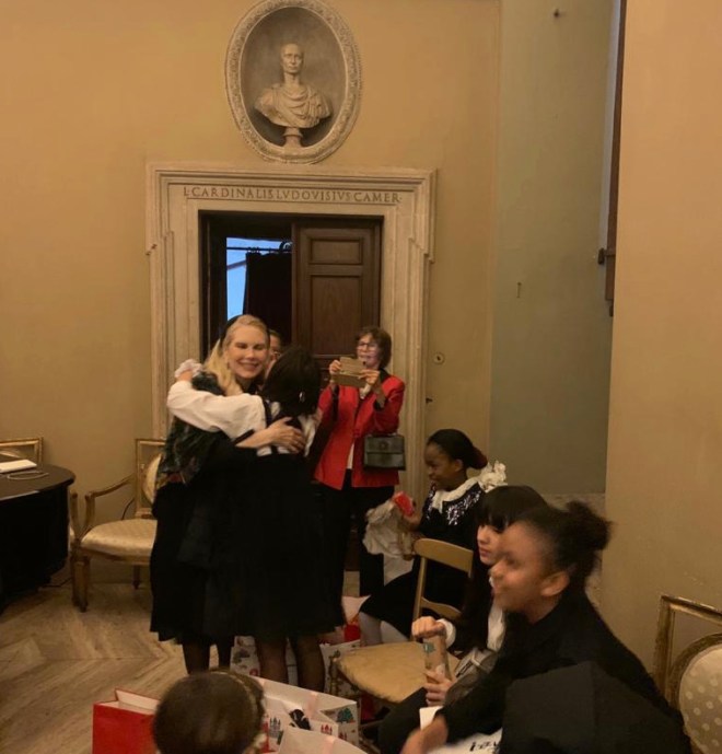Many members of Rome’s nobility have fixed the date of the December event for the Institute in their social calendars, and have brought their own children and grandchildren to participate in the festivities. This year Princess Maria Camilla Pallavicini brought gifts for all of the Institute’s children. Also supporting the 2019 event were (among others) Princess Giovanna Borghese; Prince Urbano Barberini Colonna di Sciarra; Prince Alessandro and Princess Maresti Massimo; Prince Carlo and Princess Elisa Massimo; Marchesa Teresa Patrizi; and Princess Claudia Ruspoli, as well as Prince Guglielmo Giovannelli Marconi and Princess Vittoria Rubini Marconi.