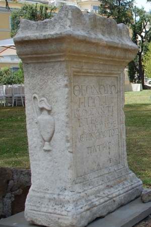 And what is to be discovered about the dedicator of this monument—the “pater” named in the inscription, Athenodotos? The name is not a common one, which gives hope for an identification. Whereas the Lexicon of Greek Personal Names lists more than 1350 individuals with the name Theodoros, it has just 28 instances of Athenodotos, with only five of those dating to the Roman imperial period, and none from the west. Since we are looking at a monument in the city of Rome, there is good reason to suggest that we have here the same individual as the philosopher and rhetorician Athenodotos, mentioned by two authors from the second century CE.