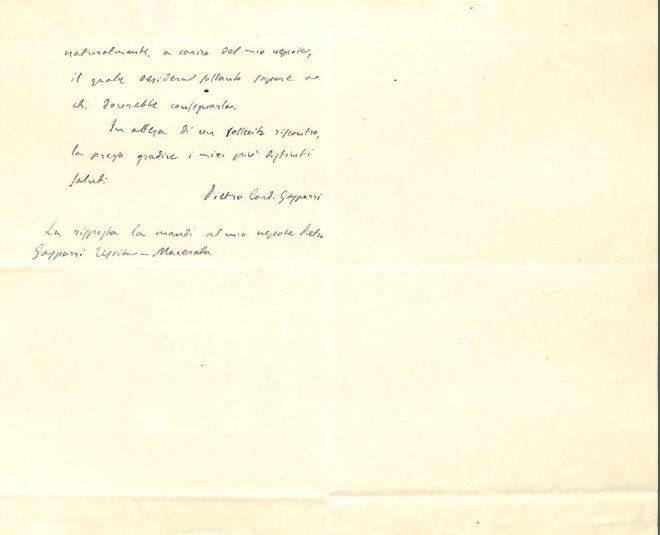 More specifically, Cardinal Gasparri is writing this letter from his home town of Ussita (Marche, in central Italy). He explains that his nephew has a she-wolf that is a few months old and “tame”, that he is willing to give to the city of Rome. Gasparri then supplies his nephew’s contact information in Ussita.