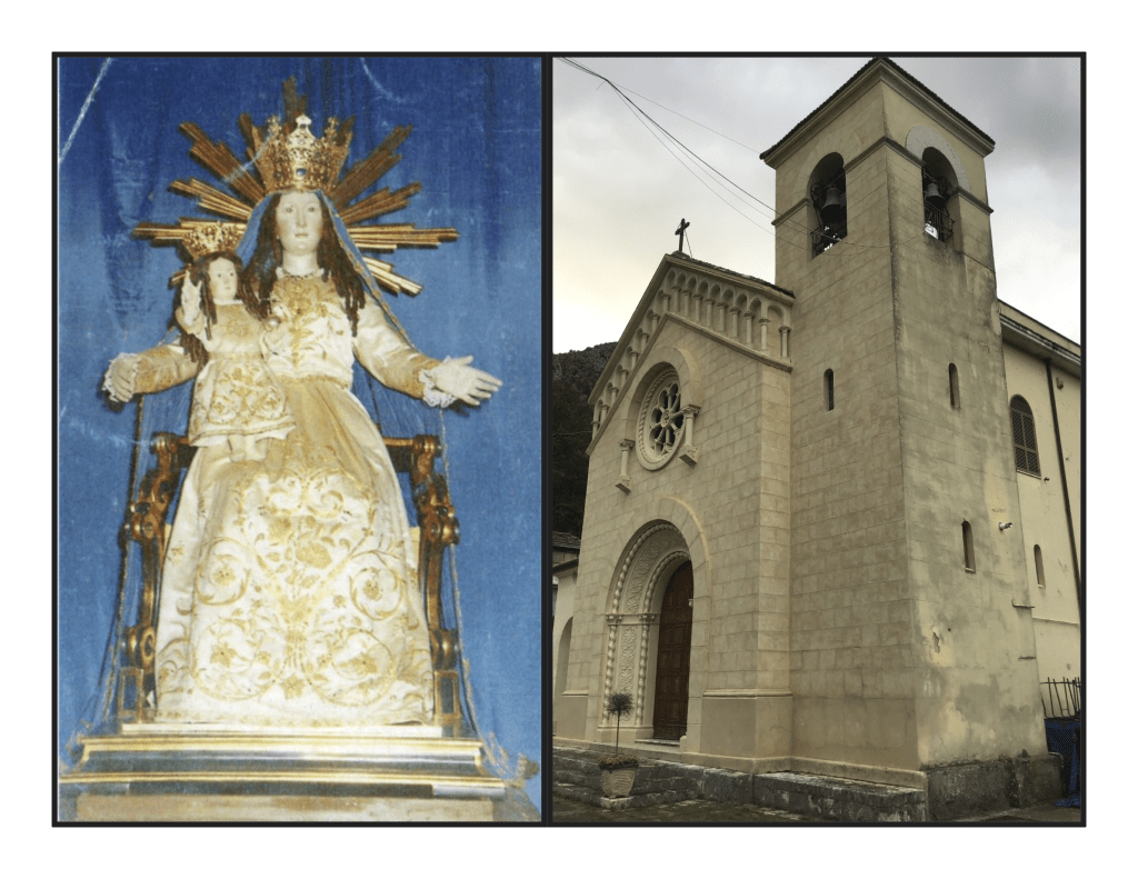 The Madonna of Valfrancesco (from vintage postcard) and her church, dedicated 1683 (Wikimedia Commons).
