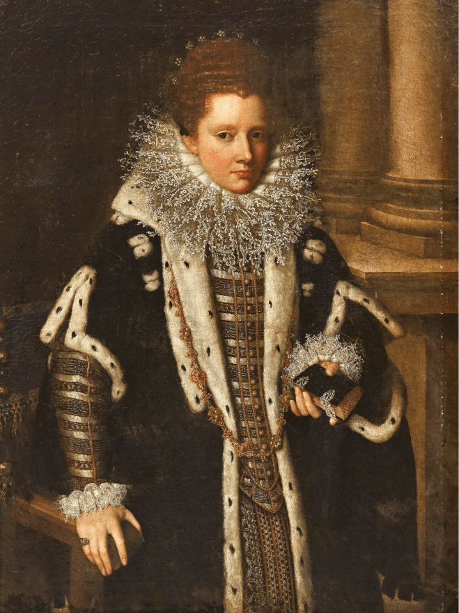 Lavinia Fontana, portrait of Costanza Sforza (1550-1617), Duchess of Sora (1550-1617), 1594. Credit: Wikimedia Commons. For the story of the rediscovery of this portrait in Sweden and its sale in 2016, see here.