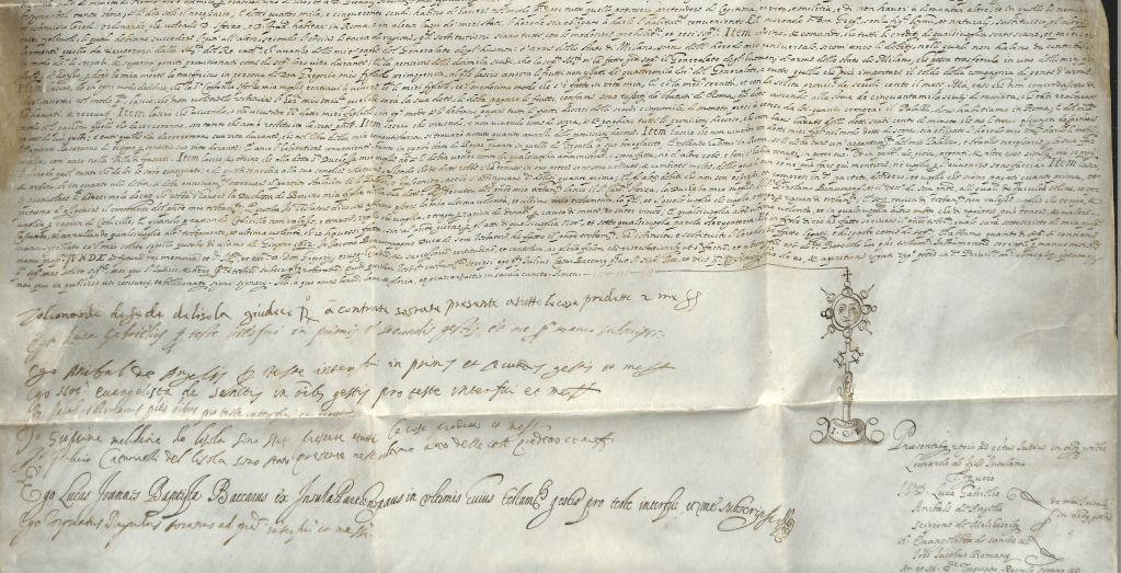 Detail of will of papal son Giacomo Boncompagni (1548-1612), from the Archivio Boncompagni Ludovisi in Casino dell’Aurora. Credit: HSH Princess Rita Boncompagni Ludovisi, Rome.
