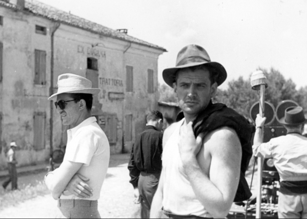 On the set of Ossessione (1943), director Luchino Visconti and actor Massimo Girotti, each mentioned in the OSS correspondence between Earl Brennan and Boncompagni Boncompagni Ludovisi. Photo: Osvaldo Civirani