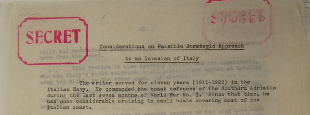 Now that a brief biography of Boncompagno Boncompagni Ludovisi has been established, we can turn to the contents of the epistolary exchange between him and Earl Brennan of the OSS Italian section. Though mainly limited to the year 1943, the dossier contains over six hundred pages. It touches upon a wide variety of topics, including military and strategic advice, and information on key political and industrialist figures within Mussolini’s regime, as well as the anti-Fascist resistance.