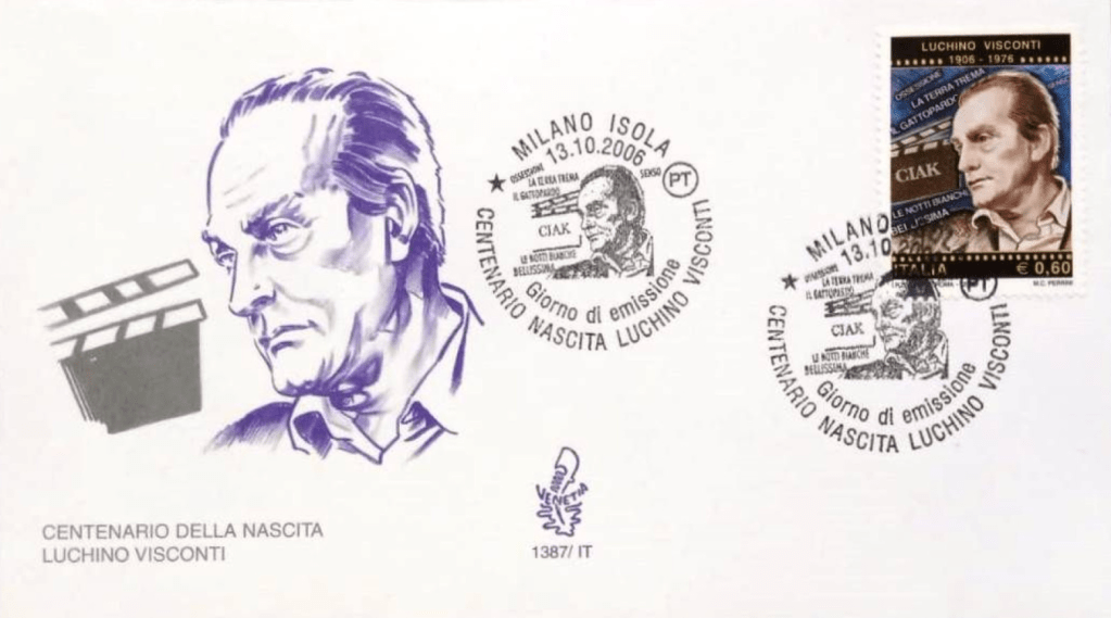 First-day cover for Italian postage stamp (13 October 2006) marking the centenary of the borth of film director Luchino Visconti