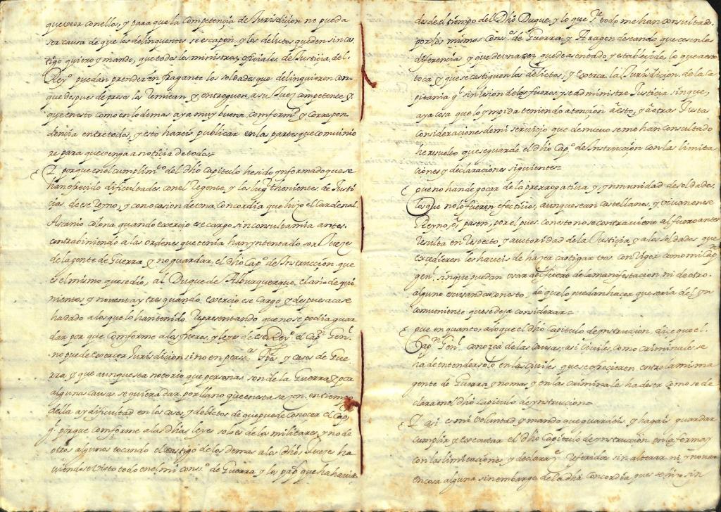 You shall have jurisdiction over all crimes committed by the military and over any related civil or criminal causes. You shall impose penalties on those responsible without allowing local civil authorities to interfere, and no one under the Captain General’s command may invoke the legal privilege of manifestación or any other royal immunity, even if married to locals.