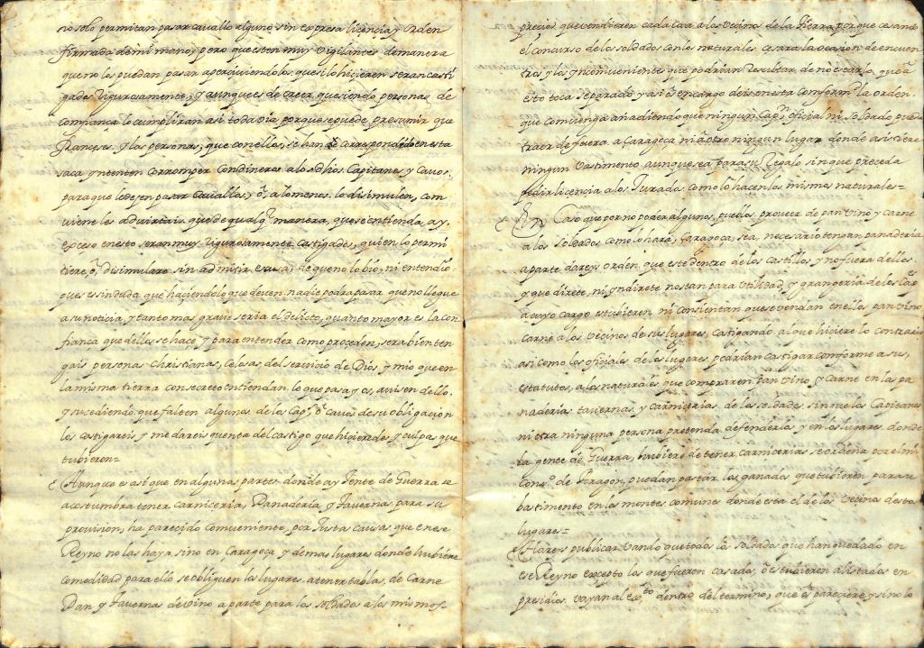 Therefore, I charge you to enforce this order, and furthermore, no captain, officer, or soldier shall travel to Zaragoza or any other place with provisions for their personal use without first obtaining permission from the local jurados (magistrates), just as local inhabitants must do.