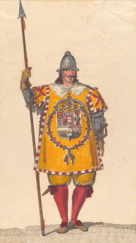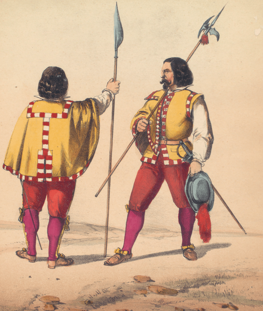 Guardia de los archeros de la cuchilla; Guardia española (1660) = Guard of the Halberd Archers; Spanish Guard. Credit: The Vinkhuijzen collection of military uniforms, New York Public Library