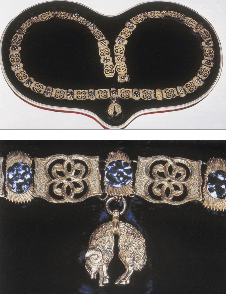 Golden Fleece chain (15th century) by Bruges goldsmith and jeweler Jean Peutin, one of 24 he created for the first Knights of the Order. Credit: Artstor Collections