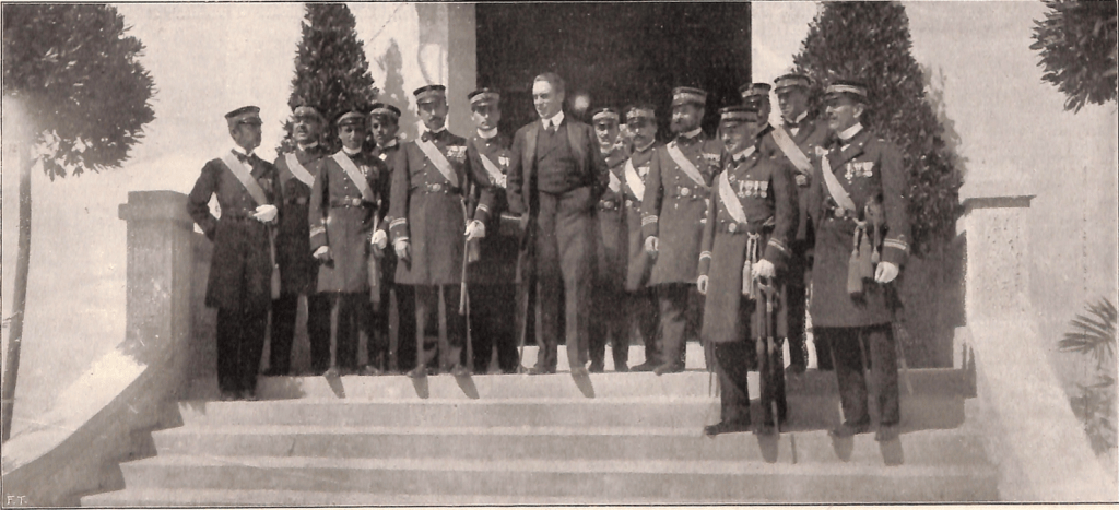 Spring 1914: Aliotti and other Italian officials in Durrës, Albania. Published in L’Illustrazione Italiana 19 April 1914 (no. 16) p379. Courtesy of HSH Princess Rita Boncompagni Ludovisi