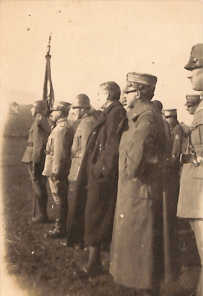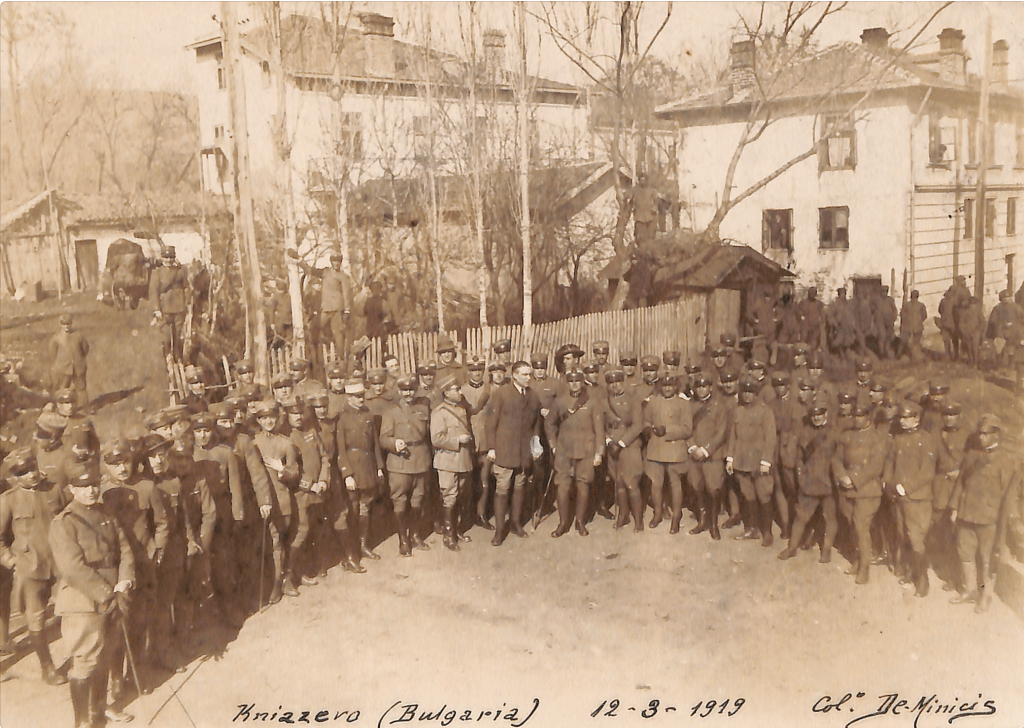 Baron Aliotti (center, in civilian dress) with Italian officers 12 March 1919, in (apparently) Knyazhevo, a neighborhood at the SW edge of Sofia. Courtesy of HSH Princess Rita Boncompagni Ludovisi