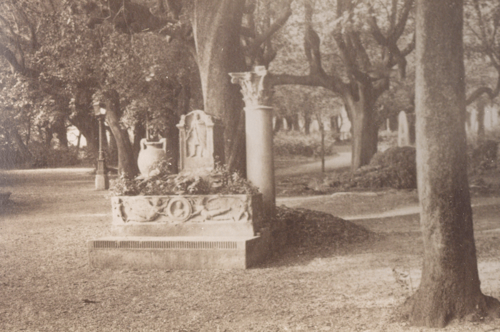 Outside the Villa Ludovisi’s ‘Hermitage’, as seen in 1885, in photography campaign of Prince Ignazio Boncompagni Ludovisi (1845-1913). A monument to the praetorian guardsman Quintus Vetius Ingenuus (CIL VI 2514) is plainly visible at center, between vase and column and above sarcophagus. The monument stands today in the garden of the dell’ Aurora. Collection of HSH Princess Rita Boncompagni Ludovisi, Rome.